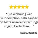 Wir haben zwei schöne Urlaubswochen in dieser zentral gelegenen, barrierefreien, blitzsauberen und komplett ausgestatteten Wohnung verbracht. Die Einrichtung ist liebevoll ausgesucht, Sitzmöbel und Bett sind auch für problematische Rücken geeignet.