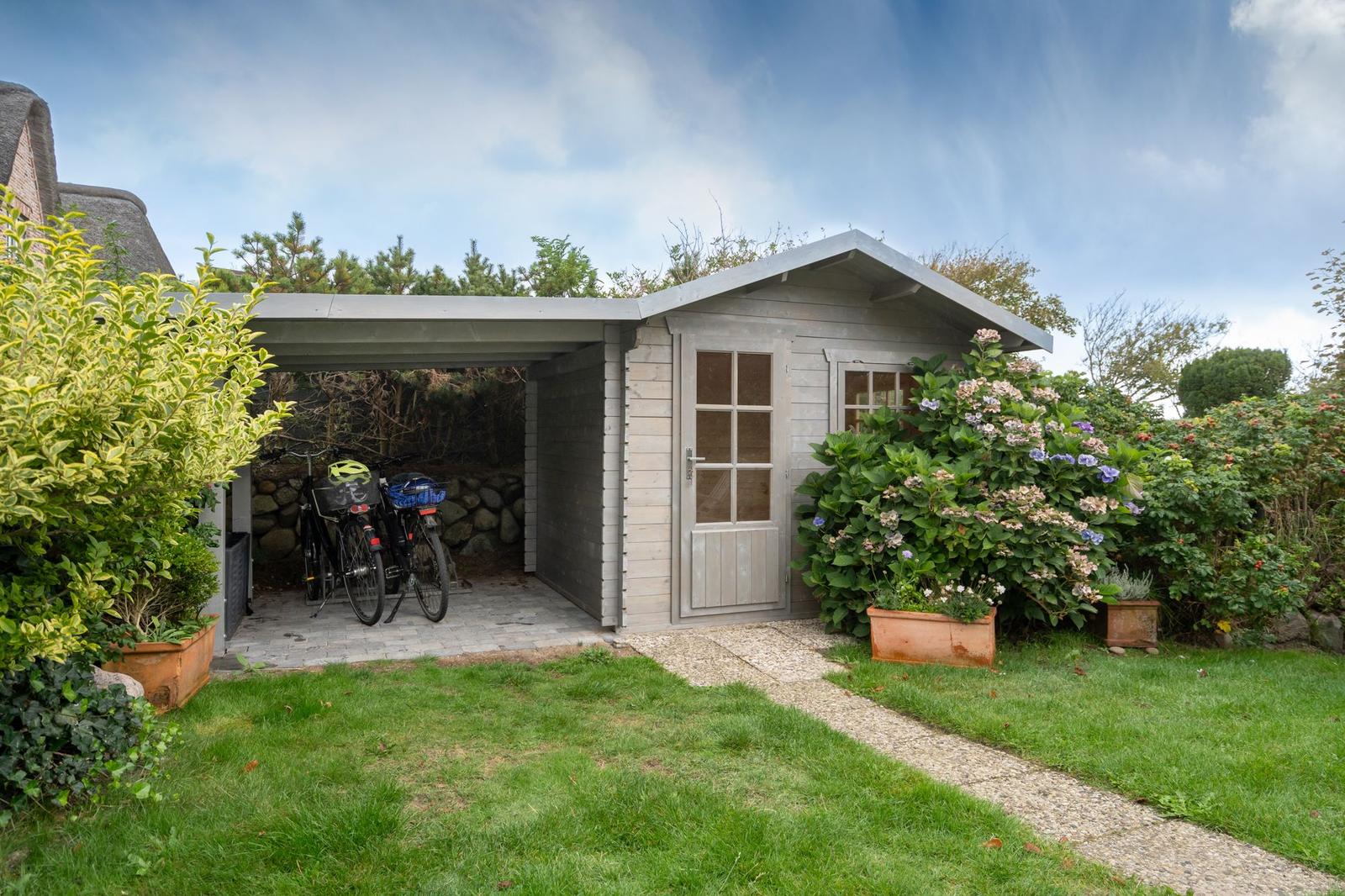 Großzügiger Garten mit allem was dazu gehört: Barbecue, Hängematte, Strandkorb, und, und, und. perfekt wäre, wenn man die Räder in den Schuppen stellen könnte.