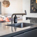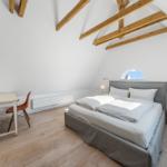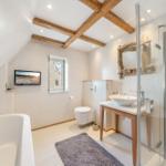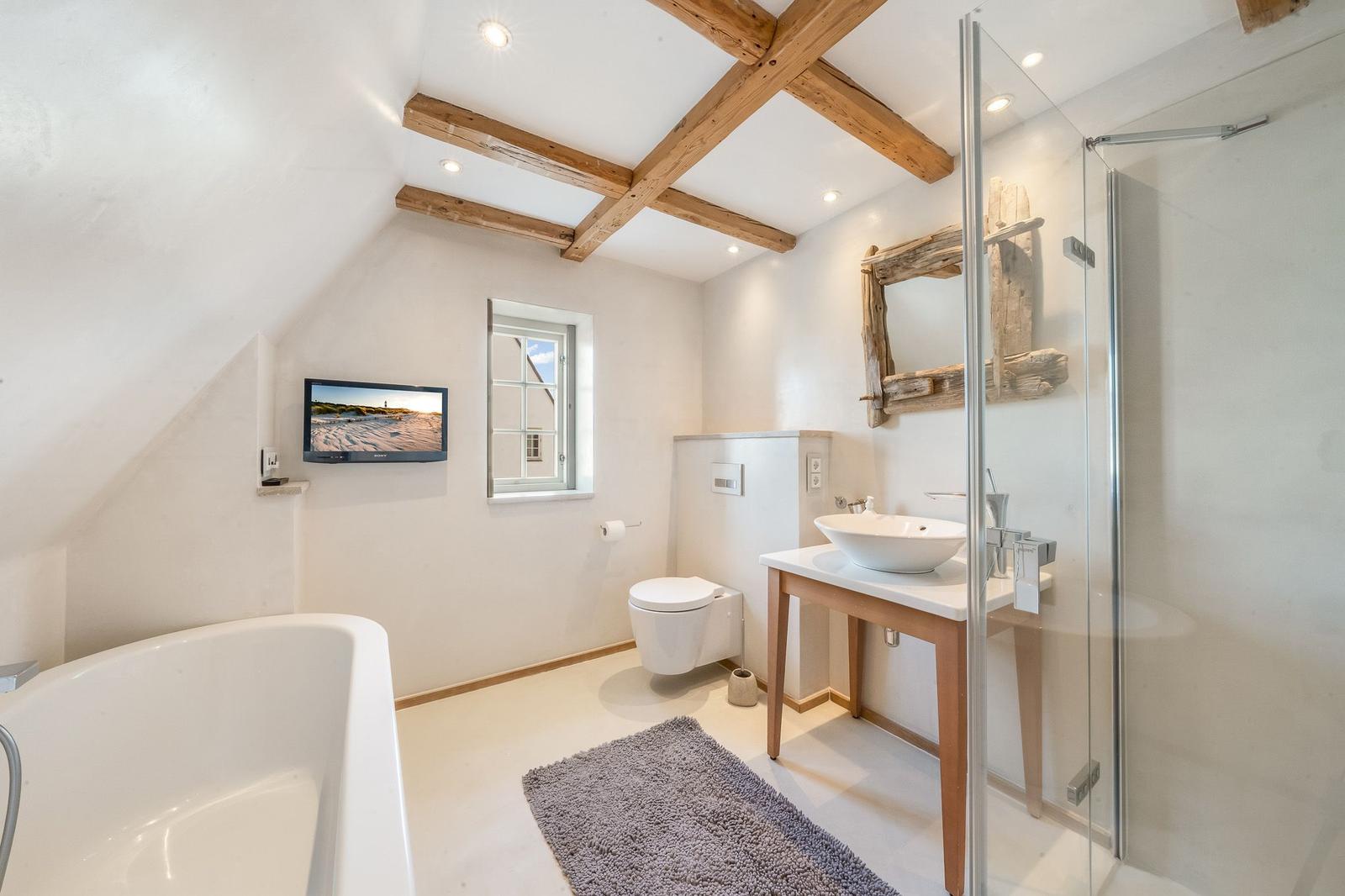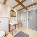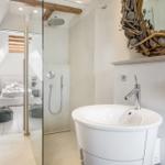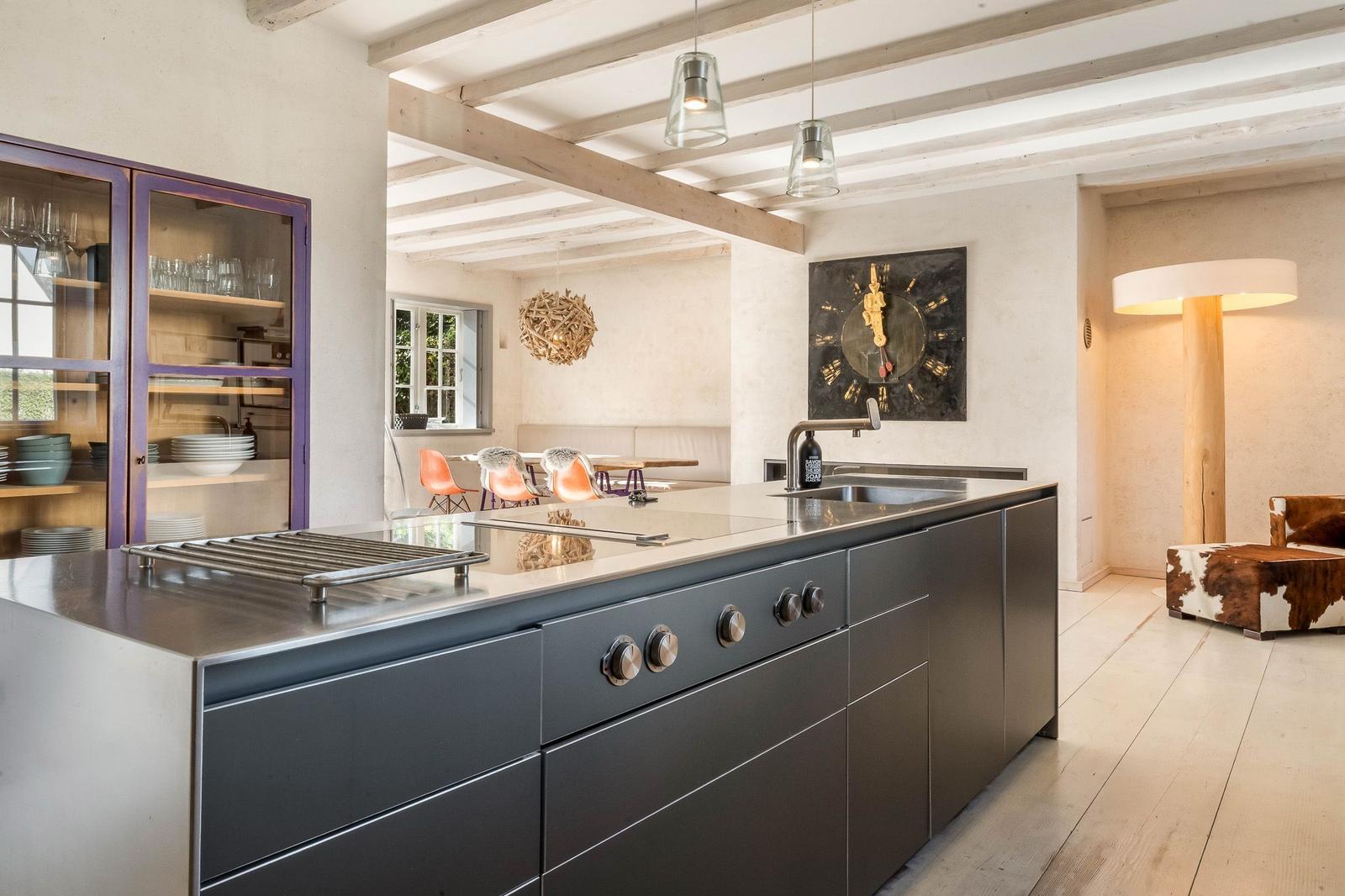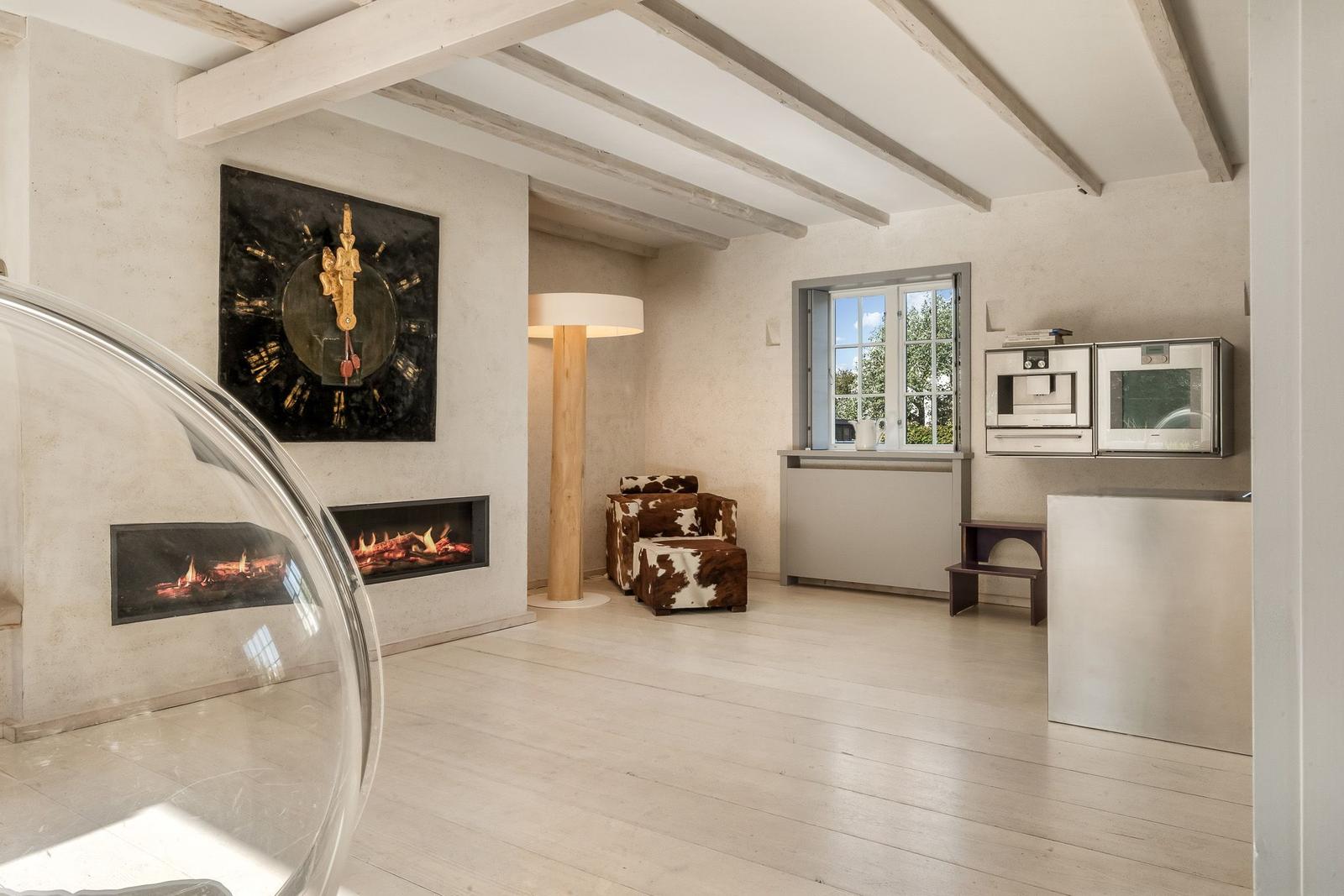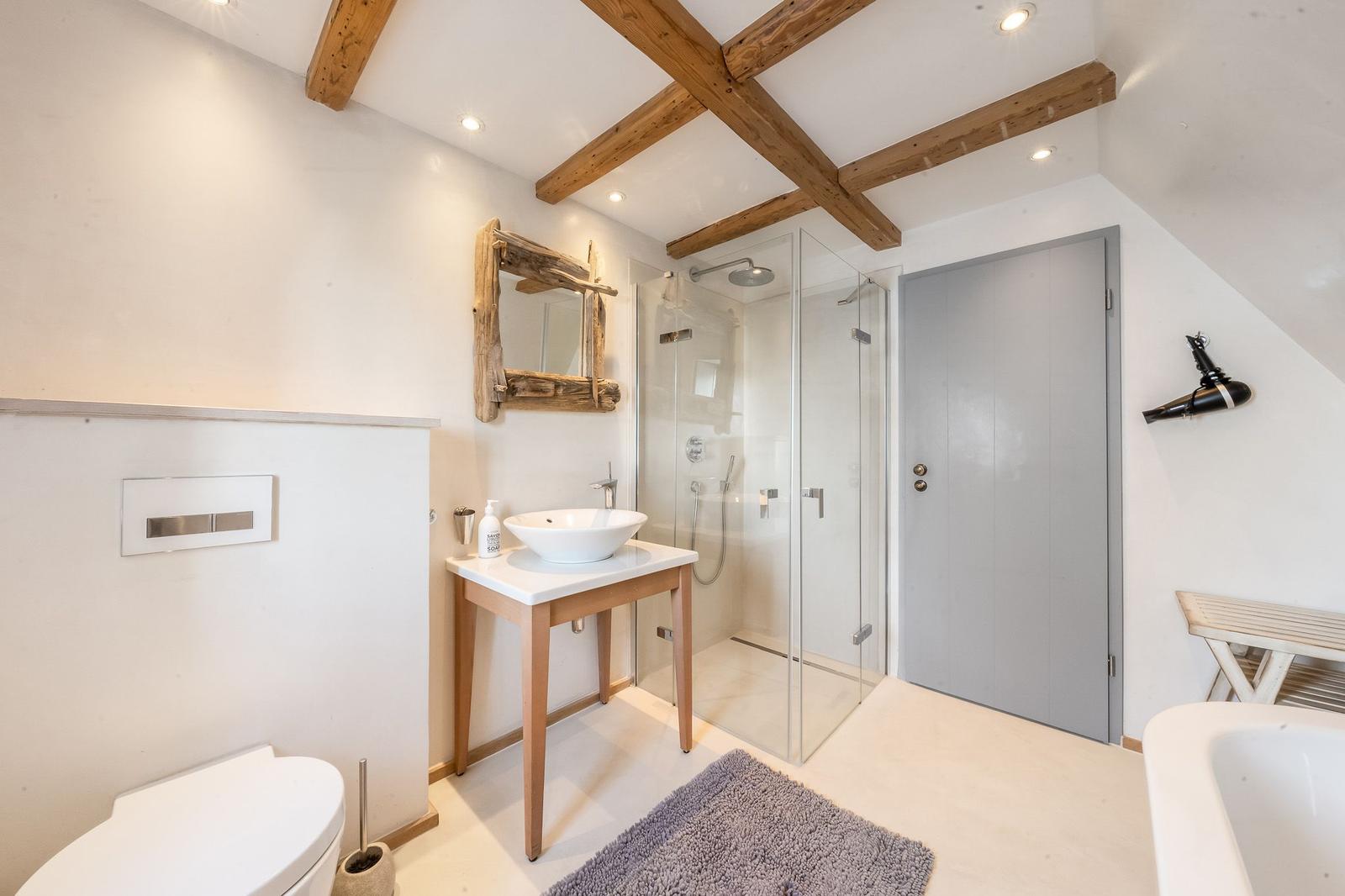 The fully equipped kitchen boasts modern amenities, including a dishwasher, electric/gas stove, oven, refrigerator, coffee machine, and toaster, ensuring delightful cooking experiences. Guests will appreciate the three well-appointed bathrooms, featuring large windows, a bathtub, and a stylish rain shower.