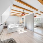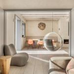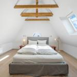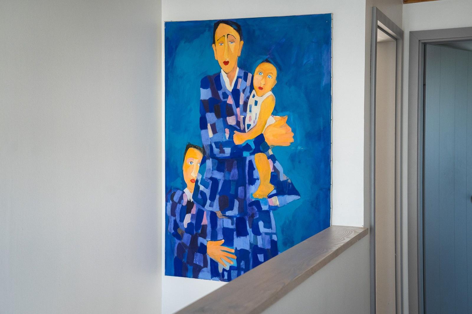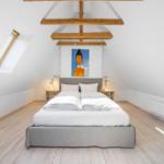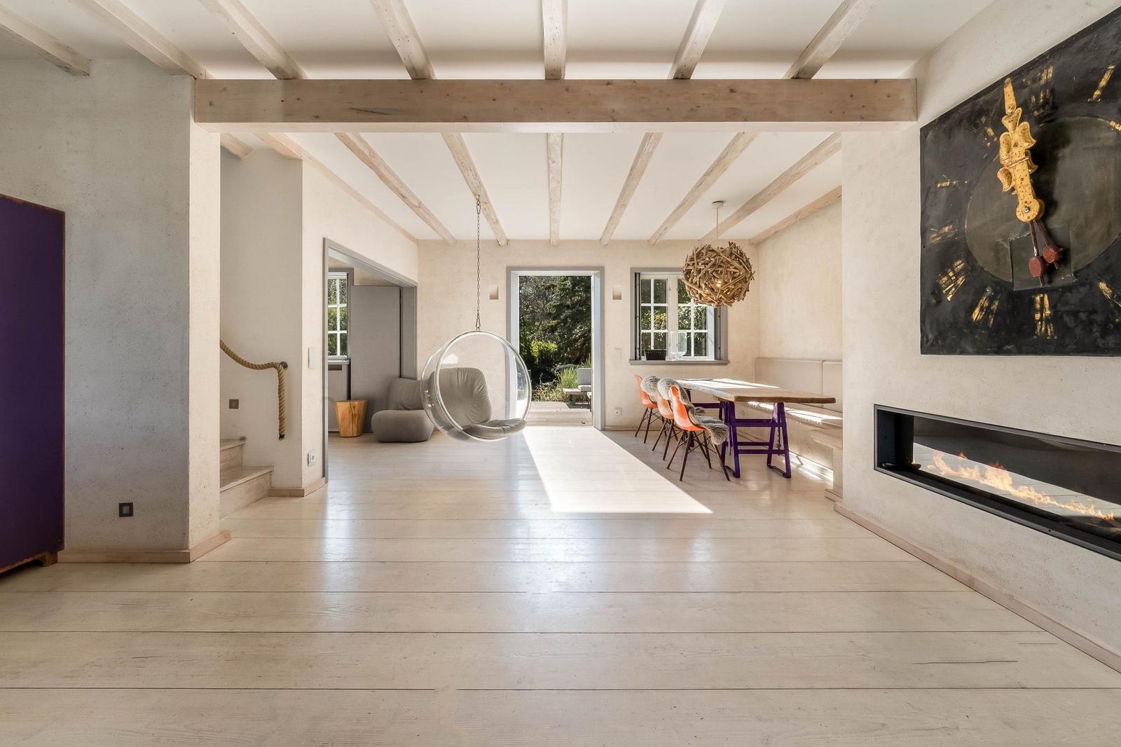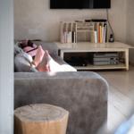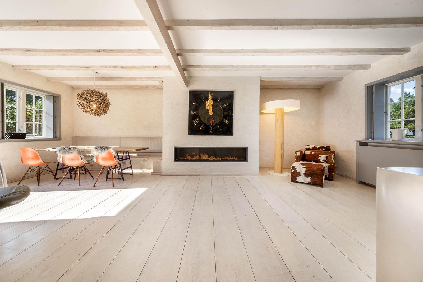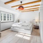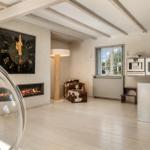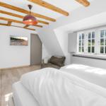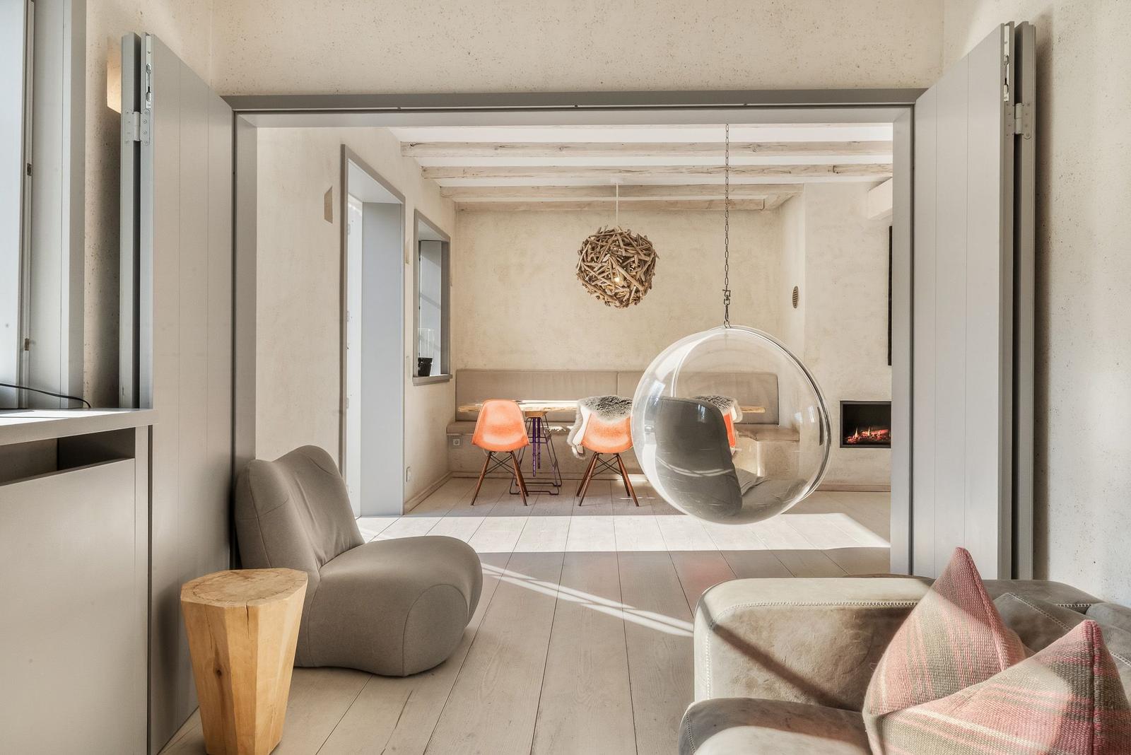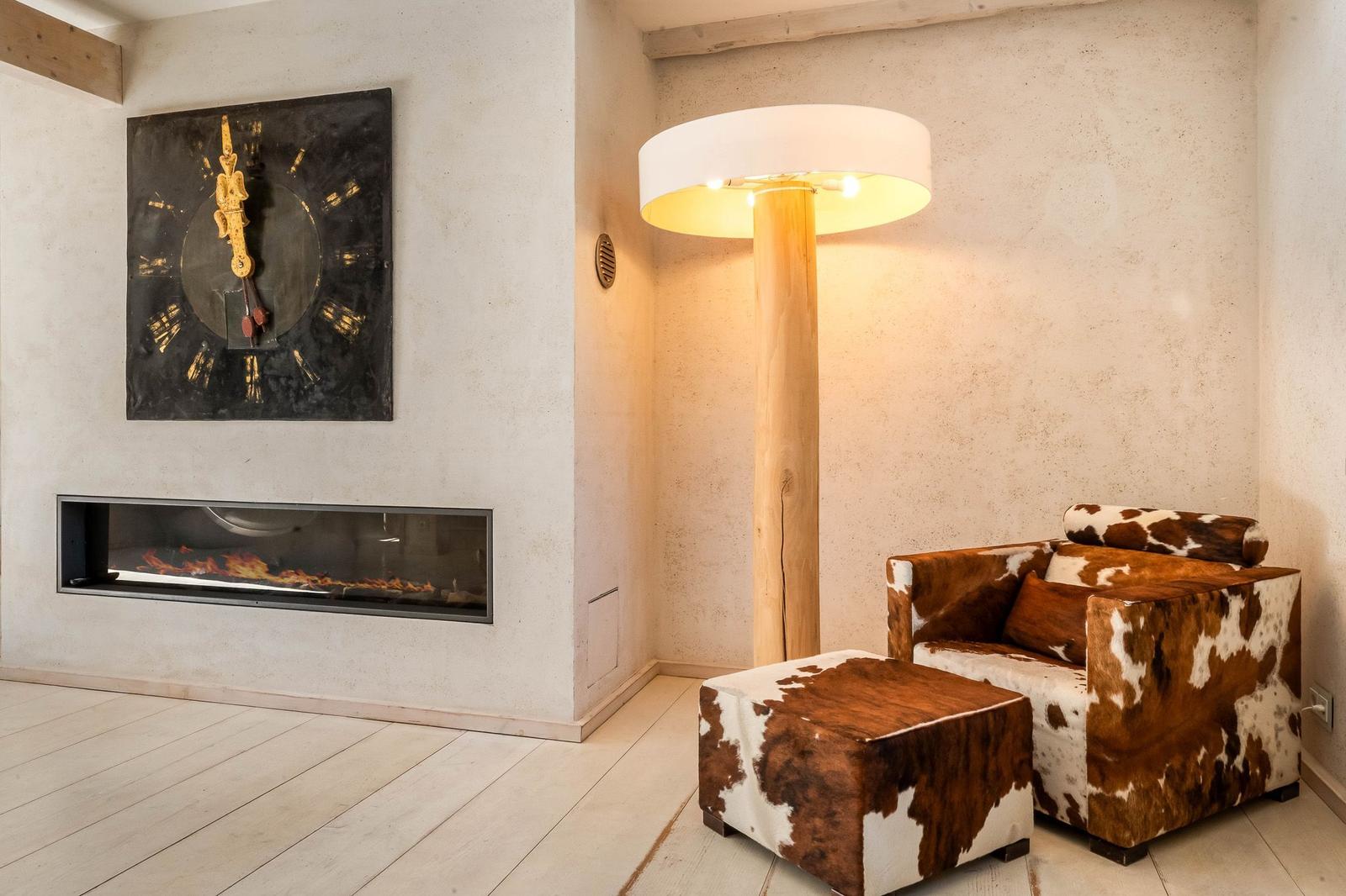 This cozy holiday apartment offers an exquisite blend of comfort and functionality. With two spacious bedrooms featuring five double beds, it can accommodate families or groups with ease. The open living area is designed for relaxation, showcasing a comfortable sofa, armchairs, and a stylish fireplace, creating a warm ambiance.