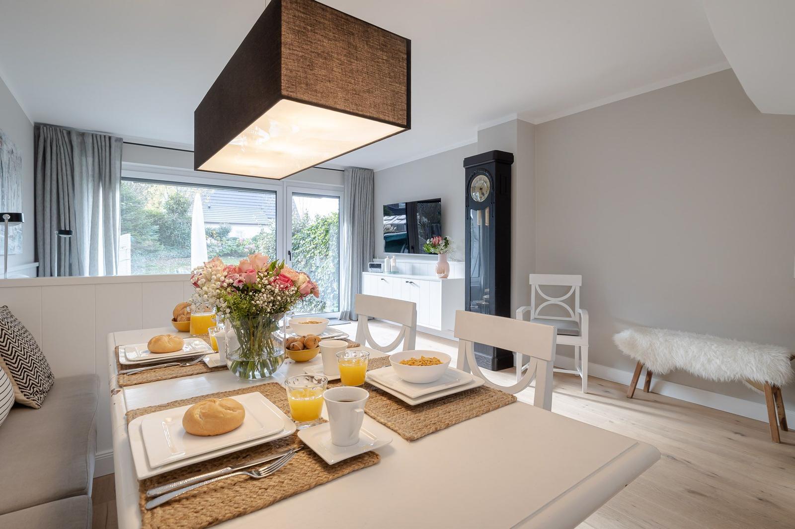 The vacation rental is located in a quiet side street in Wenningstedt, offering guests a serene escape while remaining close to local amenities. Within walking distance, one can find a bakery, a drugstore, and a supermarket, as well as several restaurants for culinary indulgence. The stunning Wenningstedt beach and its promenade are also easily accessible on foot, providing an ideal setting for beach outings and leisurely strolls.