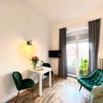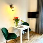 Modern brightly decorated room, 1st floor. The room has a private balcony with a beach chair in the east. Bed, wardrobe, desk and chair, armchair in the room Cable TV, DVD player, radio and Wi-Fi available Galley kitchen. Modern bathroom with shower / WC