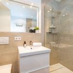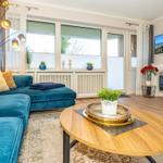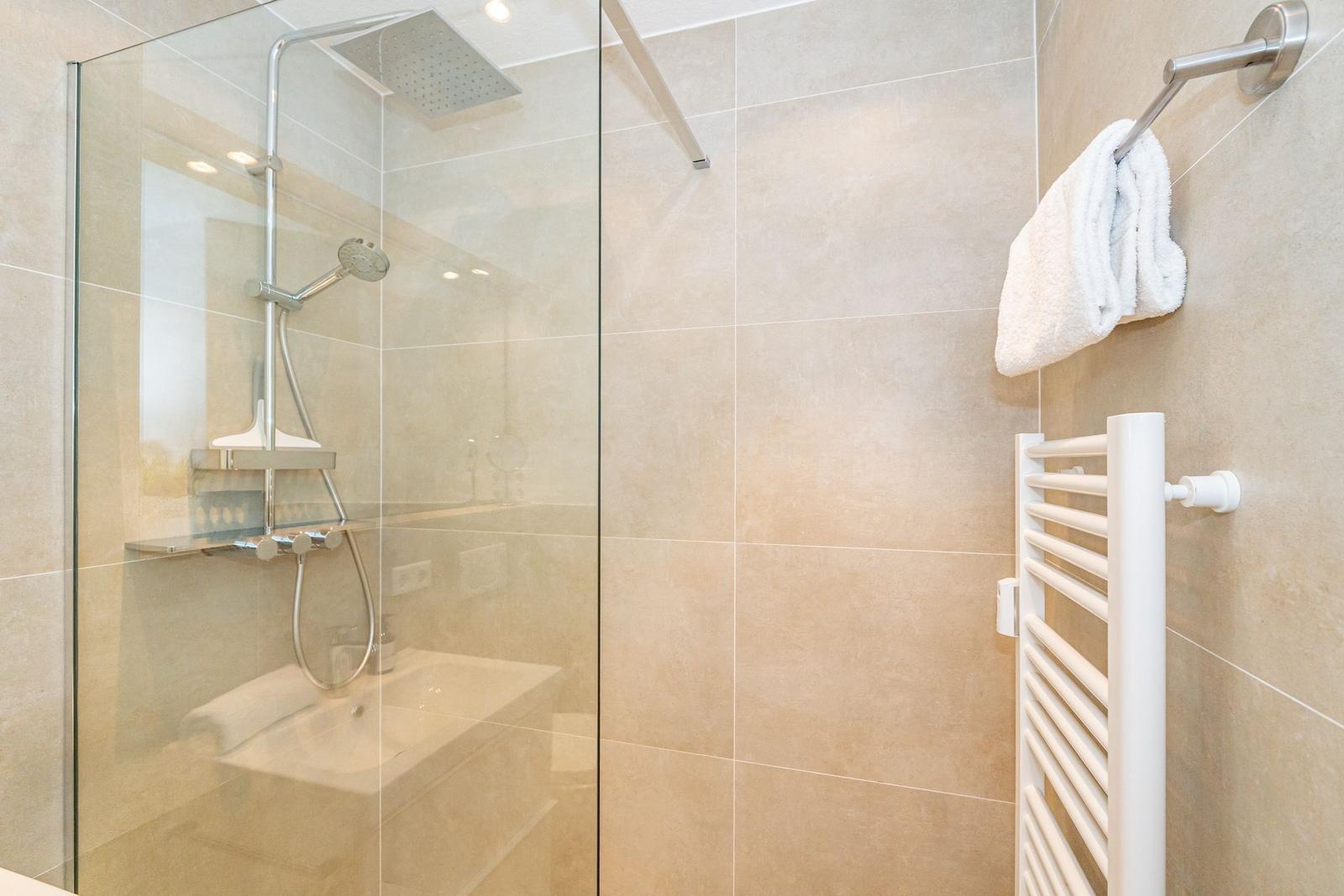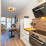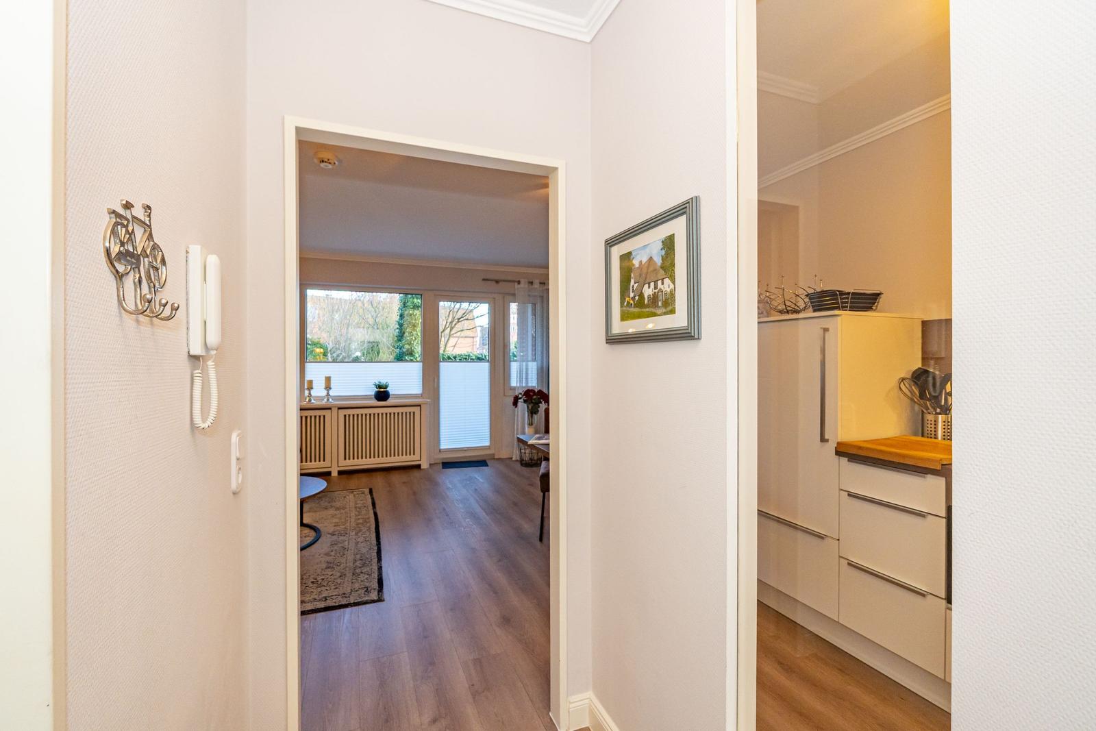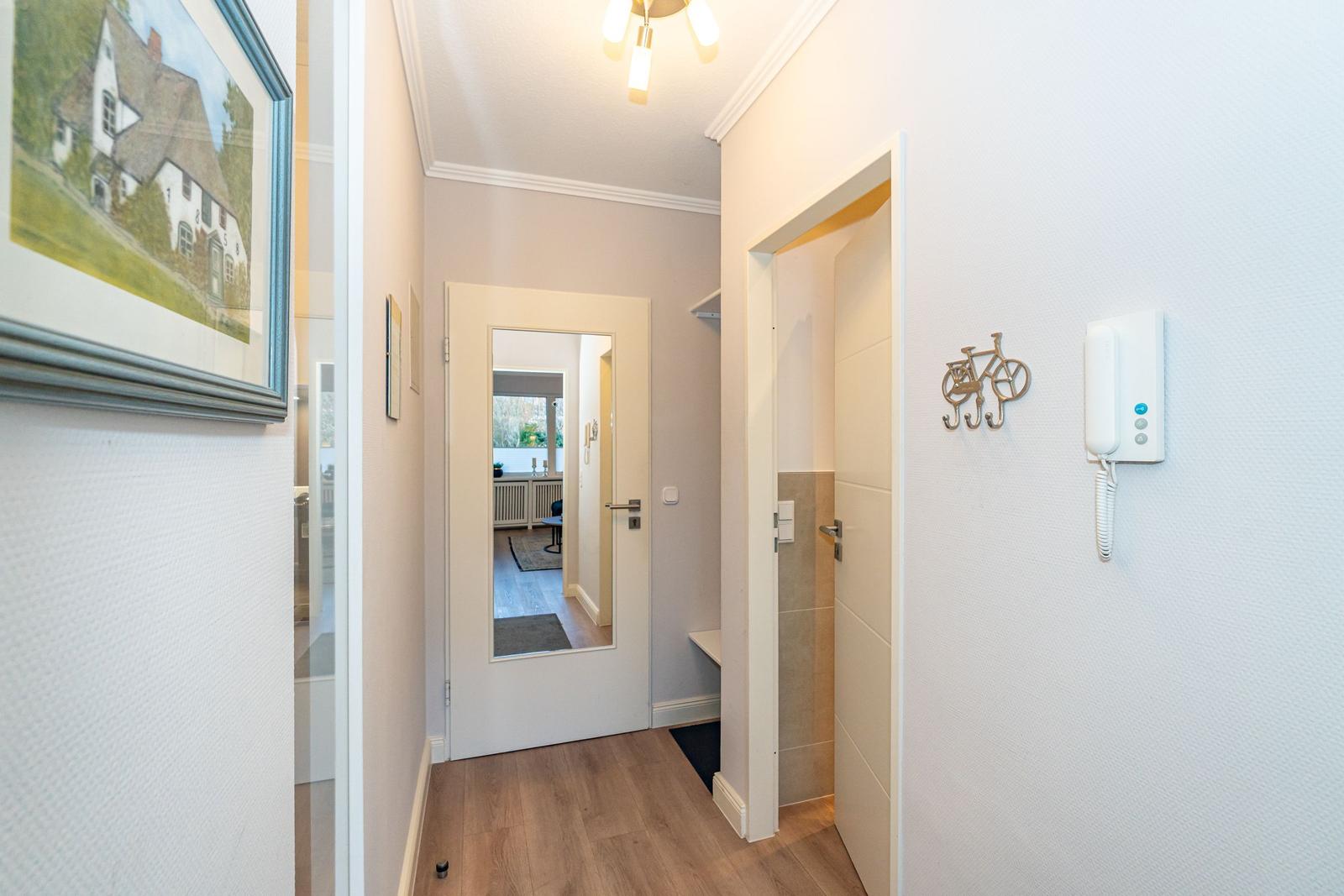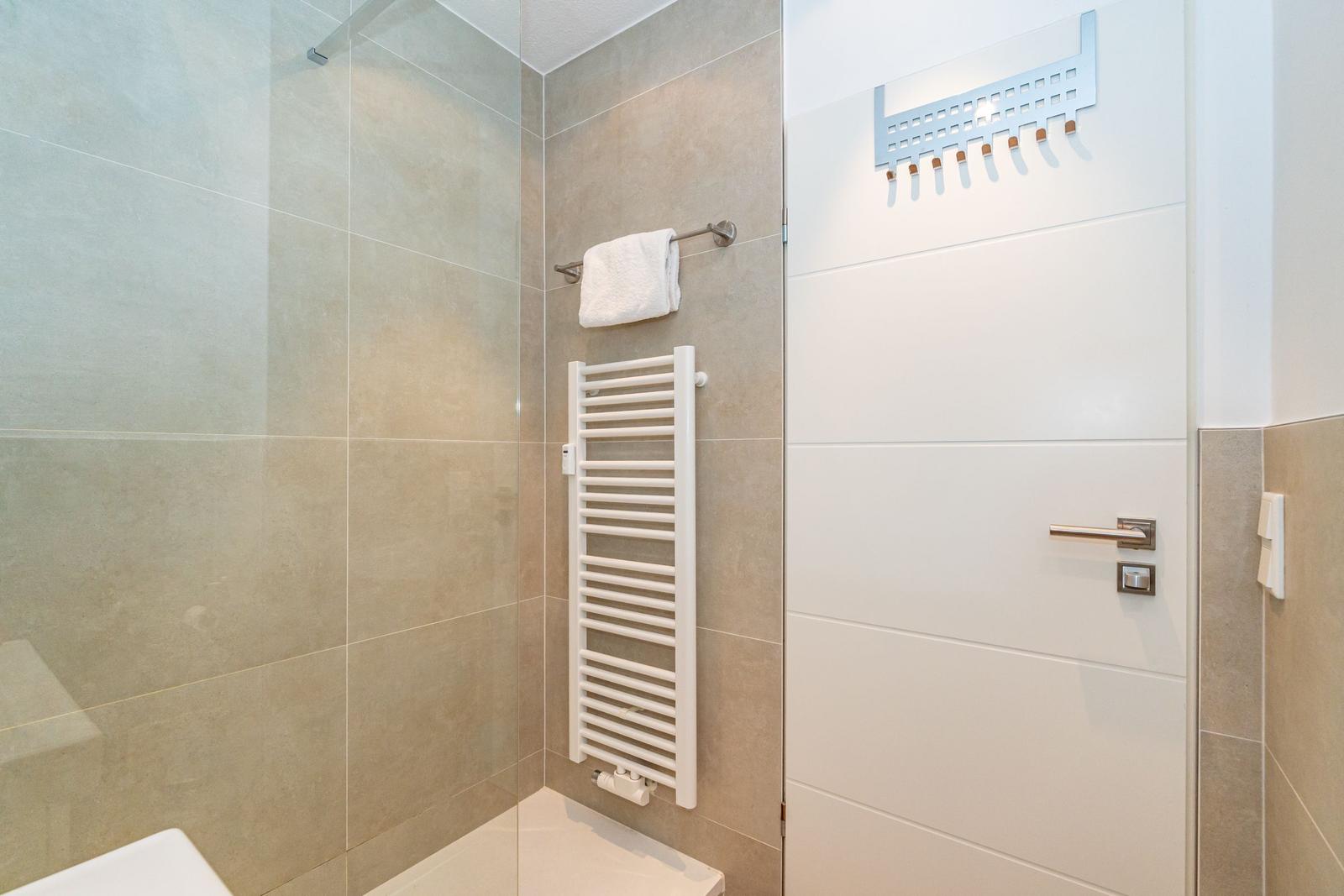 The Sünhair holiday apartment is located on the first floor of an apartment building in the heart of Westerland, Sylt. It features a modern design with a cozy living area, complete with a sofa corner and dining space. The open-plan kitchen is well-equipped with a ceramic hob, oven, refrigerator with freezer compartment, dishwasher, kettle, toaster, and coffee maker, allowing for easy self-catering. The separate bedroom includes a comfortable double bed (180x200 cm) and an additional television. The contemporary bathroom is fitted with a walk-in shower, sink, toilet, mirror, cosmetic mirror, hairdryer, and hot water. Guests have access to communal laundry facilities with a washing machine and dryer, located in the basement. A private parking space is available directly by the apartment. All windows are fitted with privacy screens, ensuring a comfortable stay.